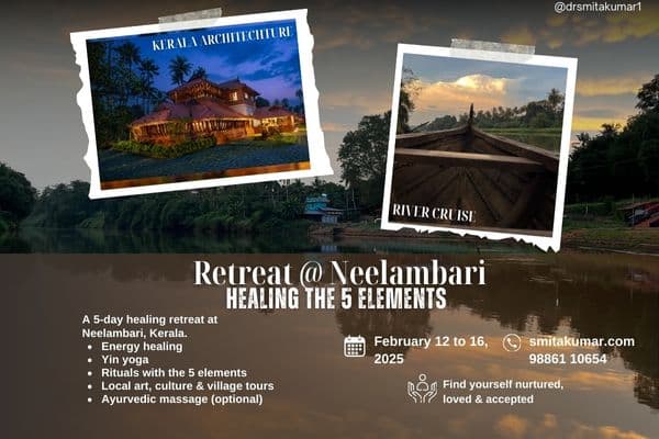 This 5-day healing retreat in a nurturing setting at Neelambari, Kerala is like a software upgrade! You will not only feel rejuvenated and a deeper connection with yourself but also feel you have shifted within. You will begin to see yourself, your relationships and patterns with a new found awareness!